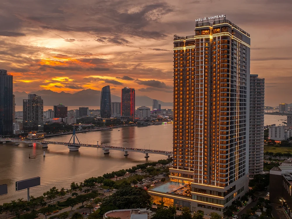 - Melia Vinpearl Danang Riverfront – View trực diện sông Hàn, vị trí cực kỳ thuận lợi để xem pháo hoa.